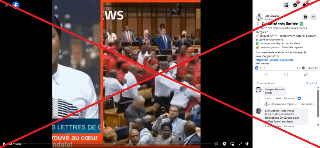 Séquence montrant la bagarre qui en réalité s’est déroulée au parlement sud-africain / Capture d’écran faite le 29/09/25