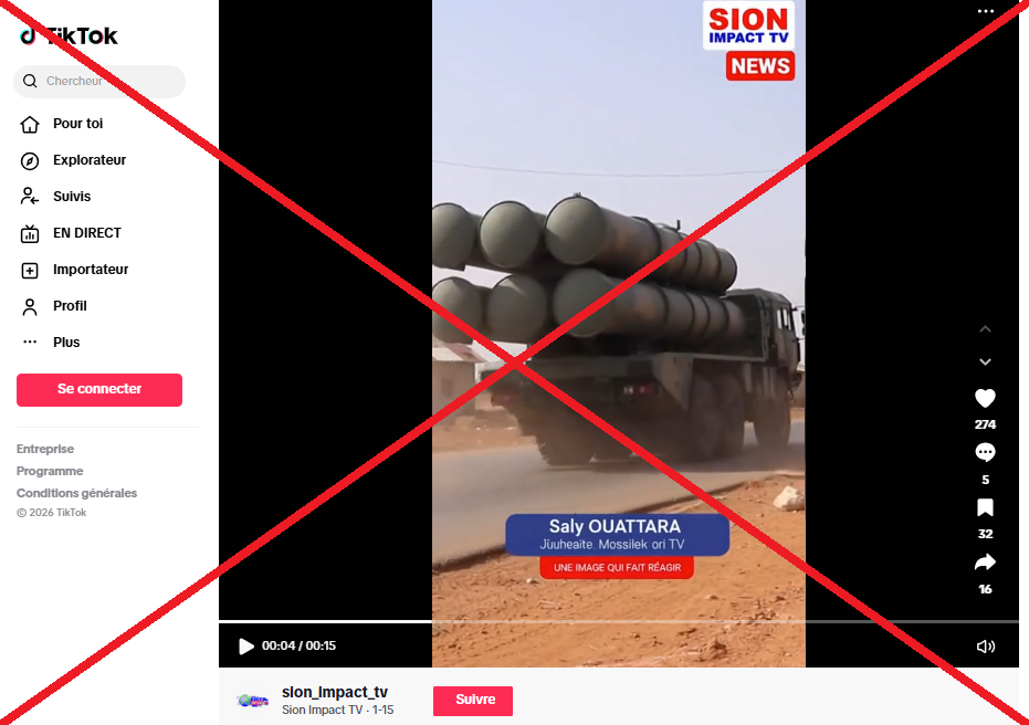Ces images présentées à tort comme des missiles burkinabè ont d’ailleurs été démontées courant janvier 2026 par des organisations de vérification des faits.