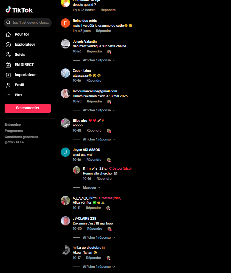 Par ailleurs, nous avons retrouvé une autre vidéo générée avec l’intelligence artificielle qui affirme que le ministre scolaire a annulé le 13 octobre, l’examen du probatoire pour l’année académique 2025-2026, contribuant à diffuser cette fausse information.