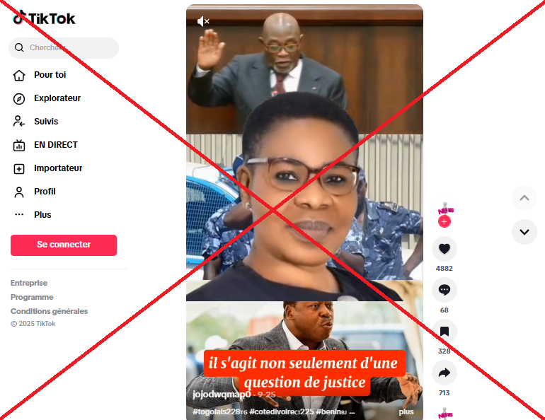Le compte TikTok flash.actualits5 a posté le 5 octobre 2025, une vidéo avec la légende “Jean Lucien appel à la libération de Marguerite Gnakadé”. La vidéo montre des images du président de la République, du Président du Conseil des ministres Faure Essozimna Gnassingbé et de l’ancien ministre des armées Marguerite Gnakadé. Son contenu laisse croire que Jean Lucien Savi de Tové a annoncé la fin des arrestations politiques. Ceci, dans le cadre d’une prétendue mission baptisée “Togo Uni”.