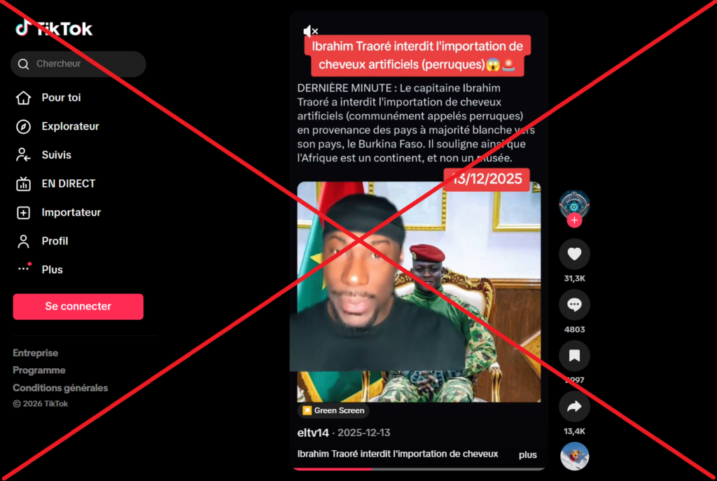 L’affirmation s’est largement répandue sur les réseaux sociaux, notamment sur Facebook, Tiktok et Youtube. Elle a également été reprise par certains sites d’information en ligne comme economiknews, Africa Top Success, latribunedelacapitale. Ces publications, diffusées à la mi-décembre 2025, relayent toutes le même message selon lequel le capitaine Ibrahim Traoré aurait interdit l’importation de mèches et de perruques synthétiques.
